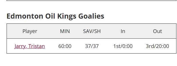 Sometimes you shut out the opponent, sometimes the opponent shuts you out. On this night Tri-City defeated the Oil Kings 1-0. Tristan Jarry with 20 saves in the hard luck loss.